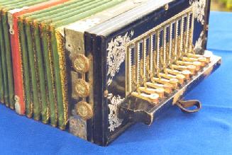 A Franz Hell accordeon. It has just 4 bass tones, and 20 trebles. Option of 3 different tunes